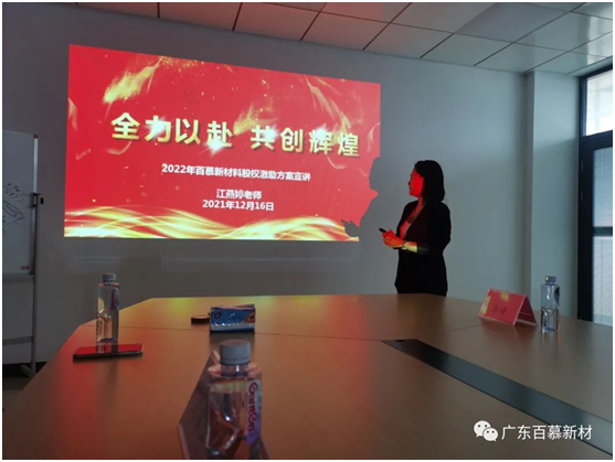 发布时间:2021/11/16 14:42:25 发布者:广东百慕 点击:次2021年12月16日,广东百慕发展史上一个具有里程碑意义的日子,股权激励项目从筹划到落地,经过多月的努力和探索,在这天终于成功导入,广东百慕首批股权激励团队共同见证了这重要一刻。