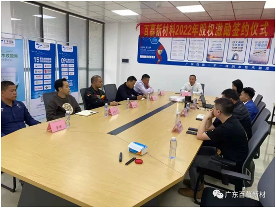 自此,签约仪式圆满完成。会后团队成员都对公司的未来充满信心,更加坚信在陆总的领导下,百慕新材全体上下共筑一心、奋力前行,打造出水性漆行业的旗舰企业,未来这艘旗舰会朝着正确的方向扬帆出海,开启新征程,攀升新境界。